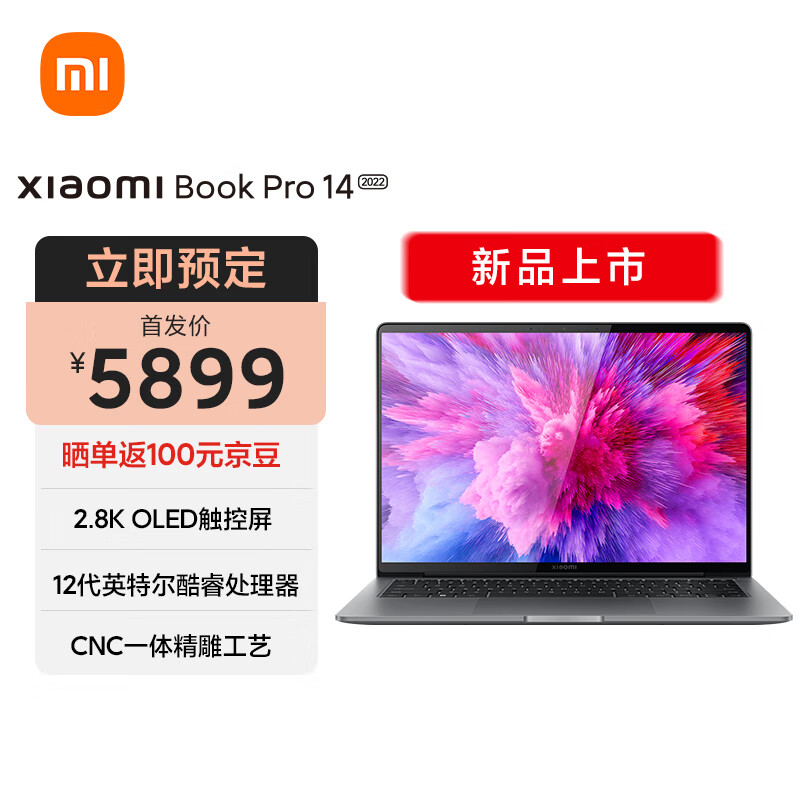 京东小米 Xiaomi Book Pro 14 2022 2.8K 高清触控屏 12 代酷睿 12 核 i5 16G 512G win11)5899 元直达链接