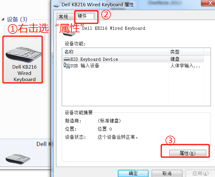 (1)“设备和打印机”–设备属性–硬件属性