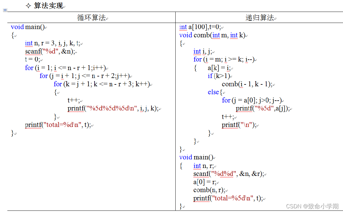 其中, 1 ≤ r ≤ n , 且 r 在循环算法实现时 代表循环嵌套的层数,必须是定值。