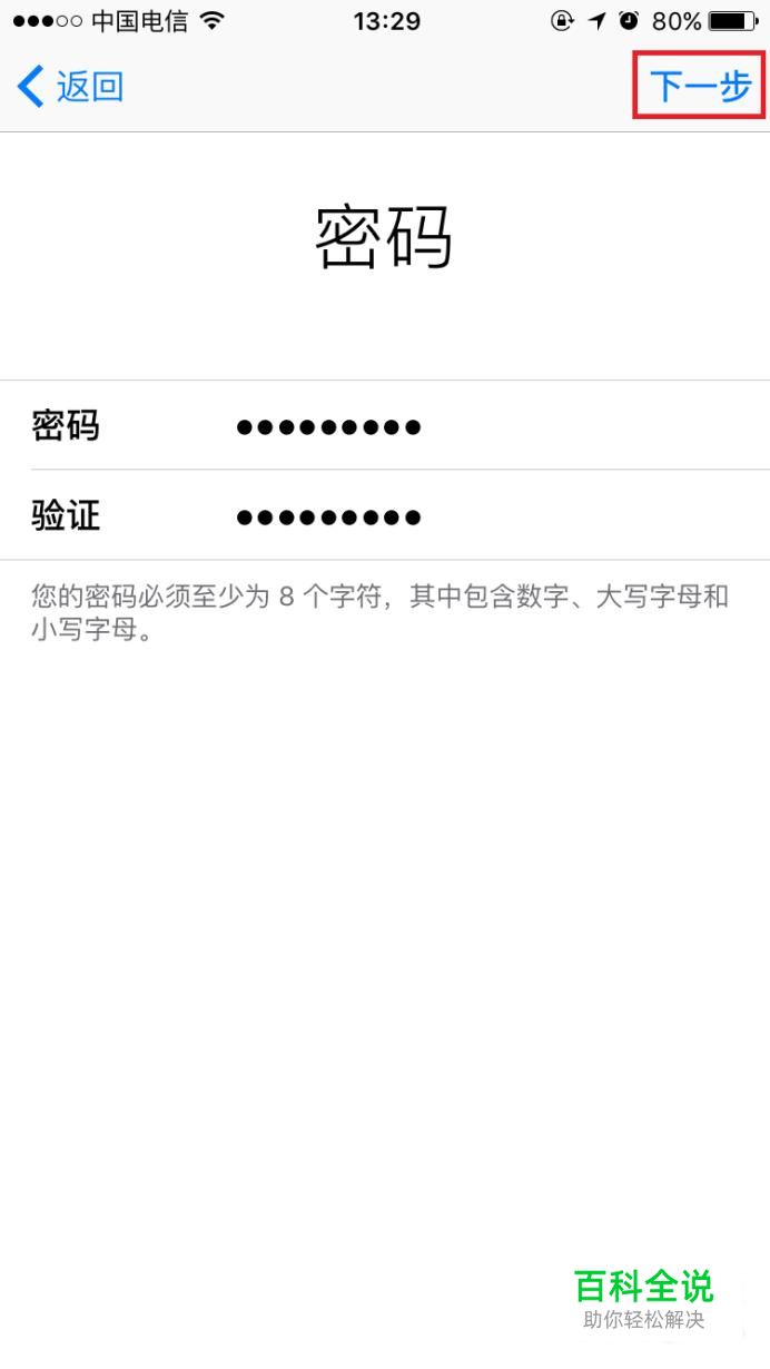 第二个问题同上,选择适合自己的问题输入答案,点击右上角的“下一步”。
