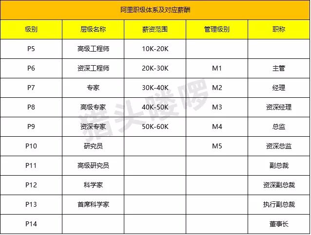 关于阿里、腾讯、百度、华为、京东的职级体系和对应薪酬之间的文章里已经发过了,感兴趣的可以点击查看《阿里腾讯华为百度京东五大厂职级体系及对应薪酬》。