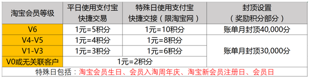 中信淘宝V金卡,特殊日使用此卡在淘宝网的支付宝快捷交易最高可享10倍中信信用卡积分,具体如下: