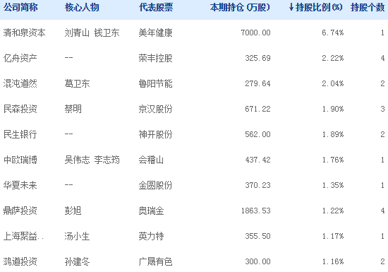 私募公司持股统计: