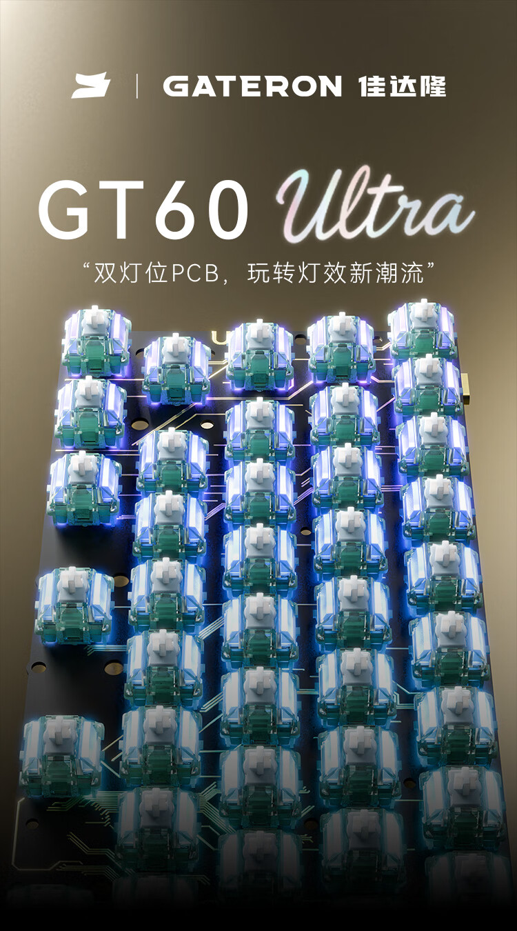 12 月 30 日消息,佳达隆 Gateron 昨日推出了 GT60 Ultra 磁轴键盘内胆,其包含 PCB 本体、FR4 沉金定位板、三层消声填充、钢板卫星轴,玩家可基于这套内胆 DIY 构建完整键盘。