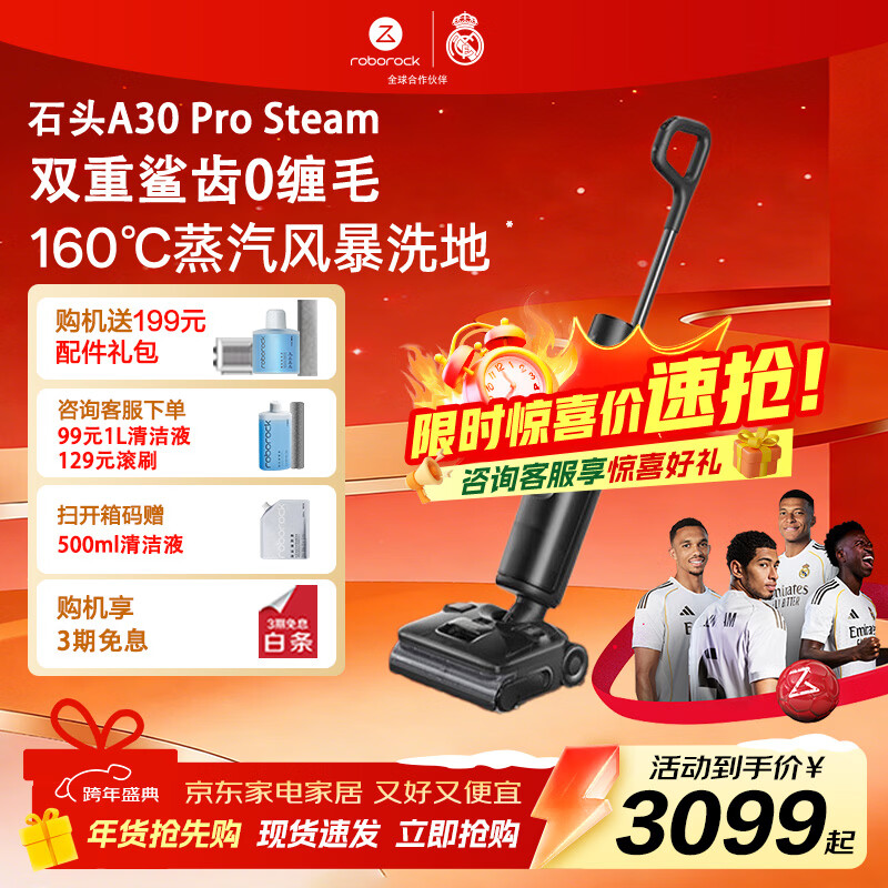 京东石头 A30 Pro Steam 家用洗地机 智能吸拖洗一体机 PLUS 专享 9.5 折券后 3000.03 元领 200 元券